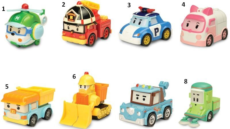 Η σούπερ Robocar ομάδα διάσωσης είναι εδώ για να σώσει όλους τους φίλους που βρίσκονται σε κίνδυνο. Αυτοκινητάκι die cast σε 8 διαφορετικά σχέδια για να διαλέξει το παιδί ή να τα συλλέξει όλα.