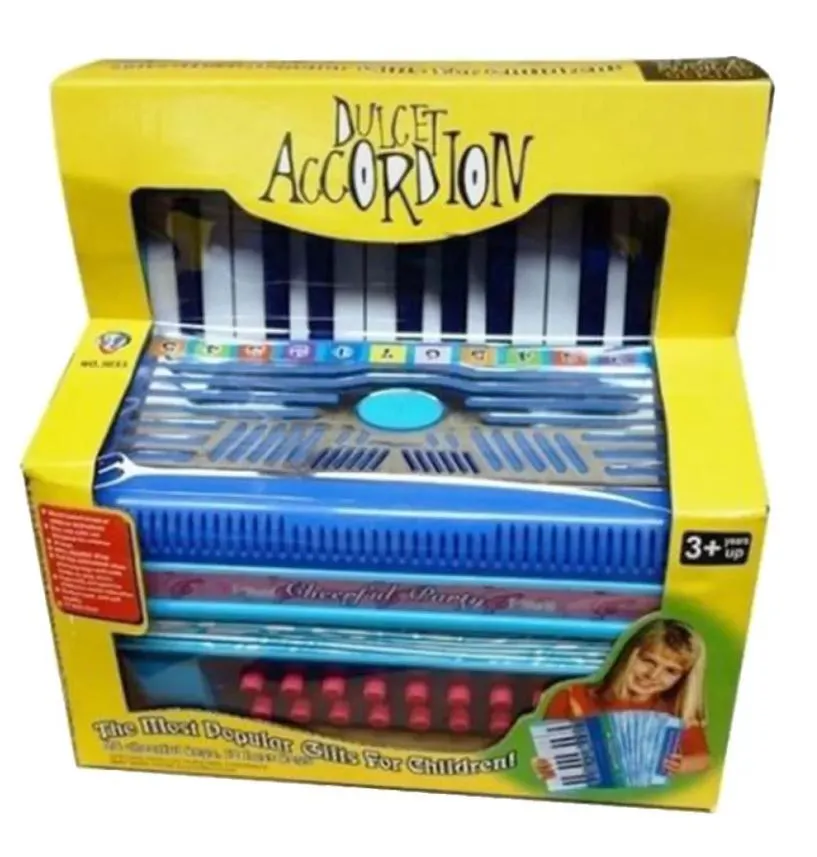Παιδικό Ακορντεόν Λειτουργικό μουσικό παιδικό ακορντεόν με 20 πλήκτρα και 16 κουμπιά μπάσου καθώς και με ιμάντα για τους ώμους και τα μπράτσα. **Δεν απαιτούνται μπαταρίες