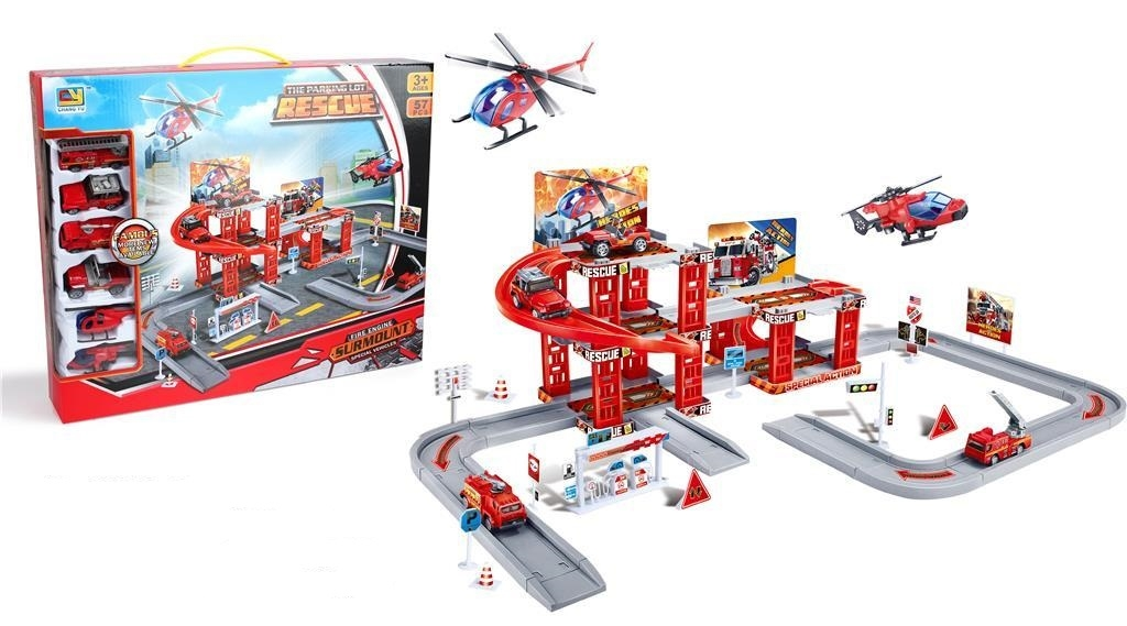 Playset Πυροσβεστικό Τμήμα Περιλαμβάνει: •Πυροσβεστικό τμήμα •6 πυροσβεστικά οχήματα •Συνολικά 57 κομμάτια