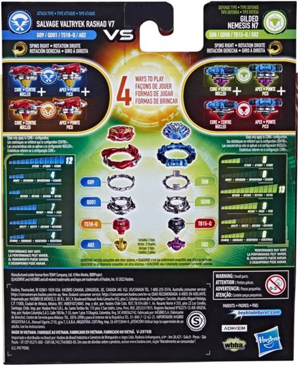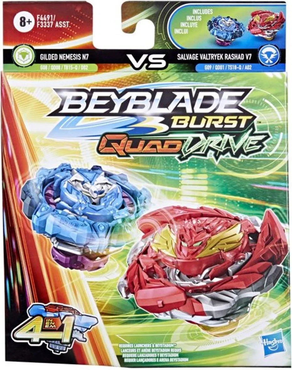 Hasbro Beyblade Burst Quad Drive Dual Pack Glided Nemesis N7 Salvage Valt R V7 (F4491)