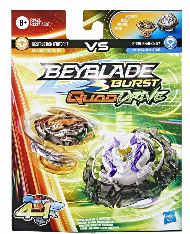 Hasbro Beyblade Burst Quad Drive Dual Pack Stone Nemesis N7 Dstr Ifritor I7 (F3962)