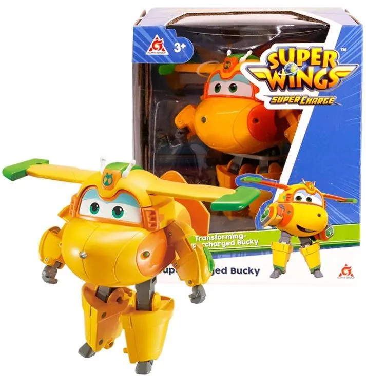 Super Wings Supercharge Transforminh – Bucky Γνώρισε την πιο μεγάλη, πιο δυνατή, πιο γρήγορη, πιο ενισχυμένη Super Wings ομάδα! Φιγούρες Super Wings 13εκ. για την αναπαράσταση αποστολών από την τηλεοπτική σειρά. Μεταμόρφωσε τα Super Wings SuperCharge από αεροπλάνο σε robot με 10 εύκολα βήματα